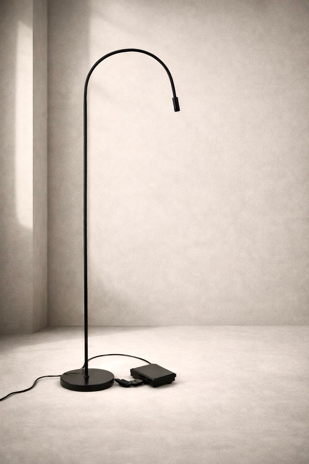 Lampan levereras med en fotpedal som enkelt används för att starta lampan. Lampan placeras på golvet bredvid din behandlings säng. Justera sedan armen så du får lampan i önskad vinkel.